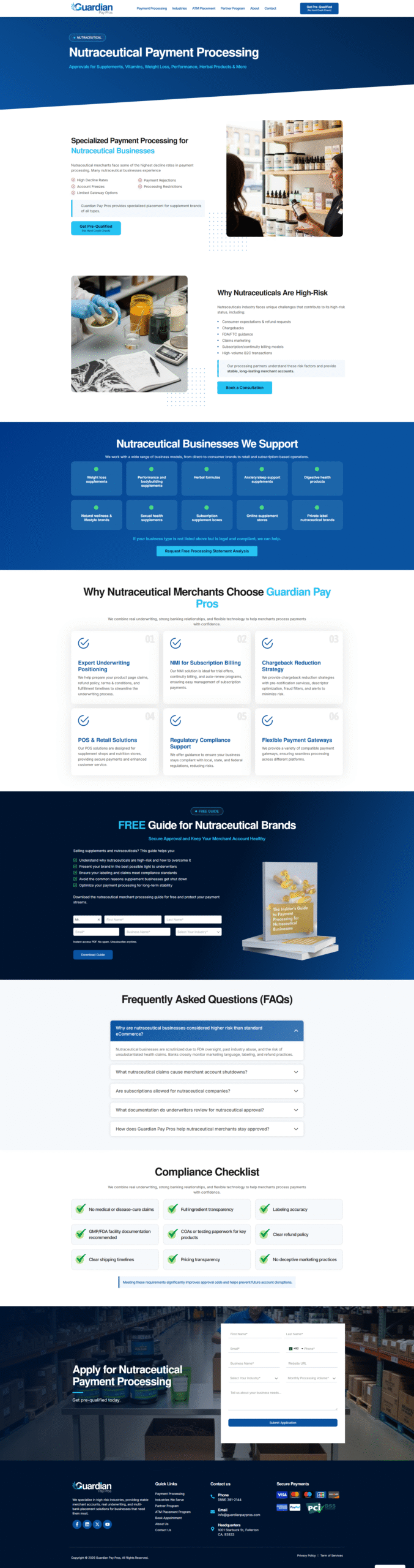 Designed and developed a comprehensive payment solutions platform tailored for businesses of all risk levels, from low-risk retail to high-risk industries often declined by traditional processors. The site highlights robust merchant account services, real underwriting, and multi-bank placement strategies that help companies secure approvals, protect accounts, and scale with confidence. Built with clear service sections – including payment processing, gateway integrations, in-person hardware solutions, and industry-specific breakdowns, the platform communicates complex financial offerings with intuitive navigation and compelling visuals to educate, convert, and support business owners worldwide.