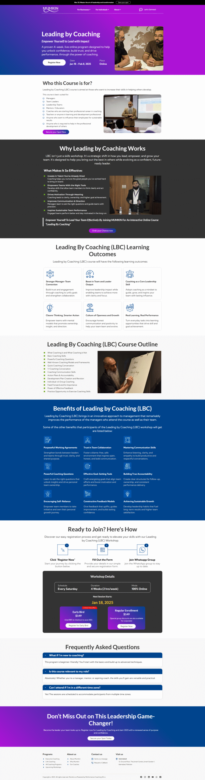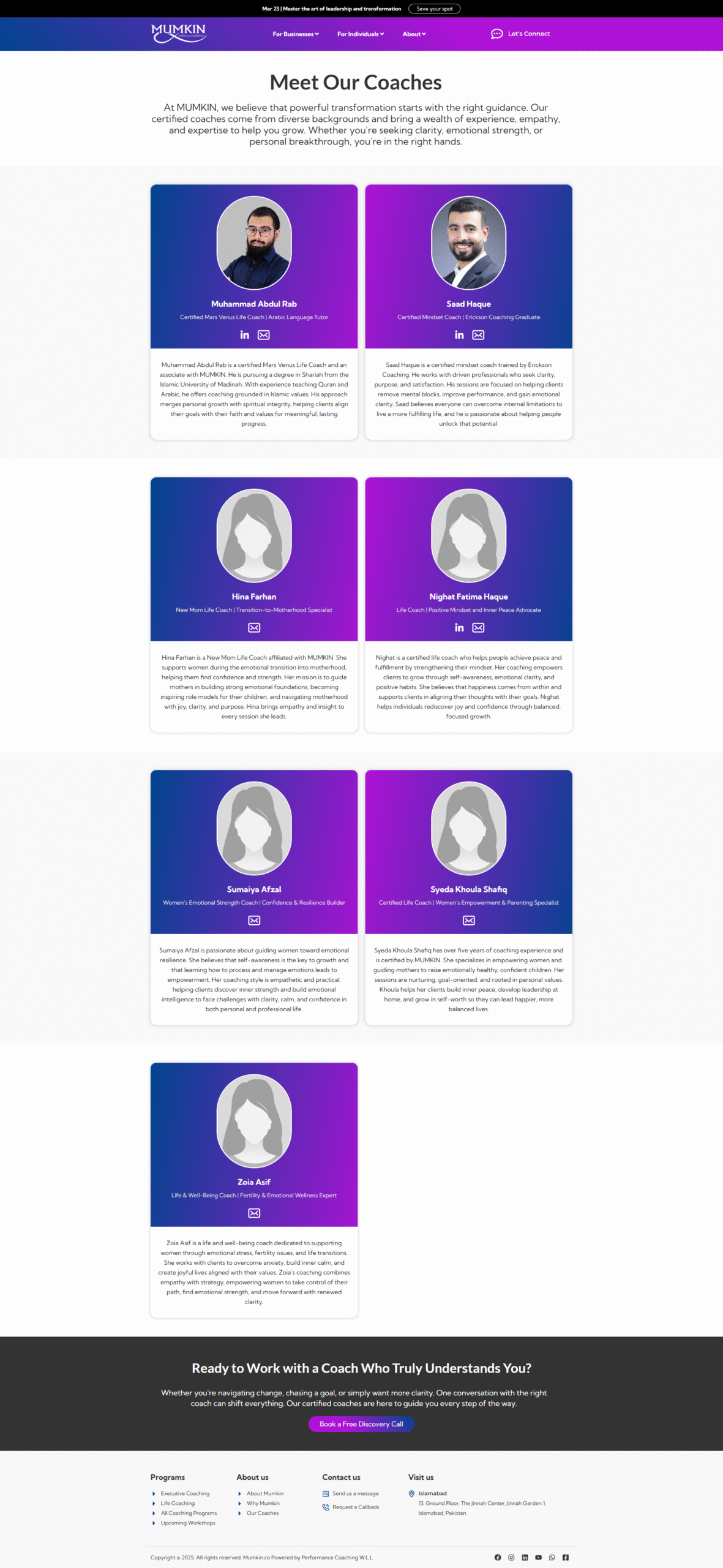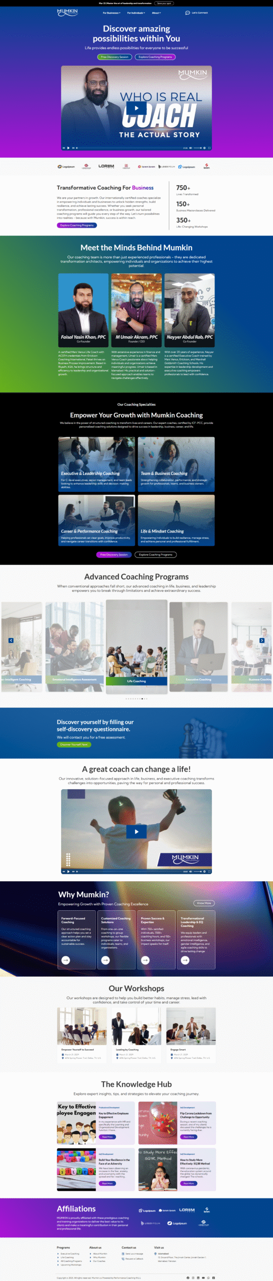 Designed and developed a dynamic website for an international coaching company dedicated to personal, professional, and organizational transformation. The site showcases diverse coaching programs in leadership, business, life, and mindset, highlighting certified coaches, success stories, and impactful workshops. Built with an engaging, aspirational design and seamless navigation to inspire growth, foster connection, and make professional coaching accessible to individuals and organizations worldwide.